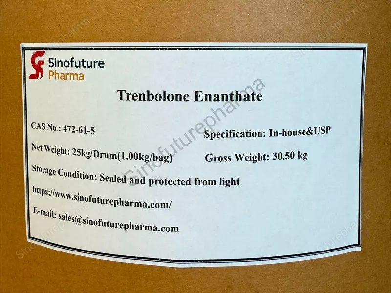 Professzionális Trenbolone Enanthate gyártóként a SINOFUTURE PHARMA szigorúan ellenőrzi a tisztasági szintet és a szennyeződési profilokat, hogy biztosítsa a gyógyszeripari alapanyagok állandó minőségét.
